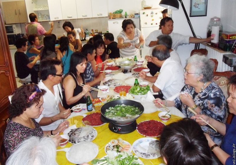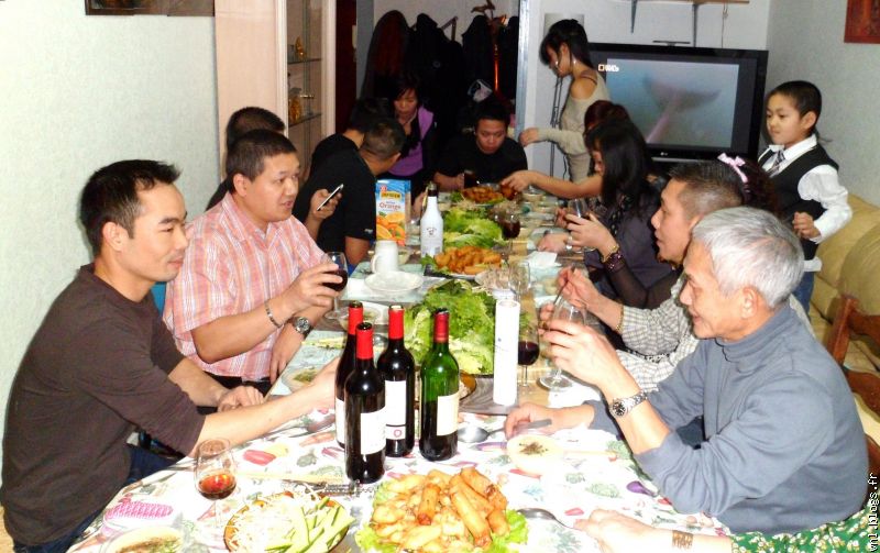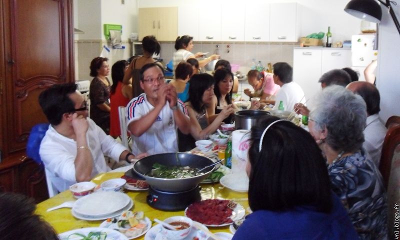 Monsieur Khanh a invité beaucoup de monde autour d' une table pour fêter sa santé retrouvée.