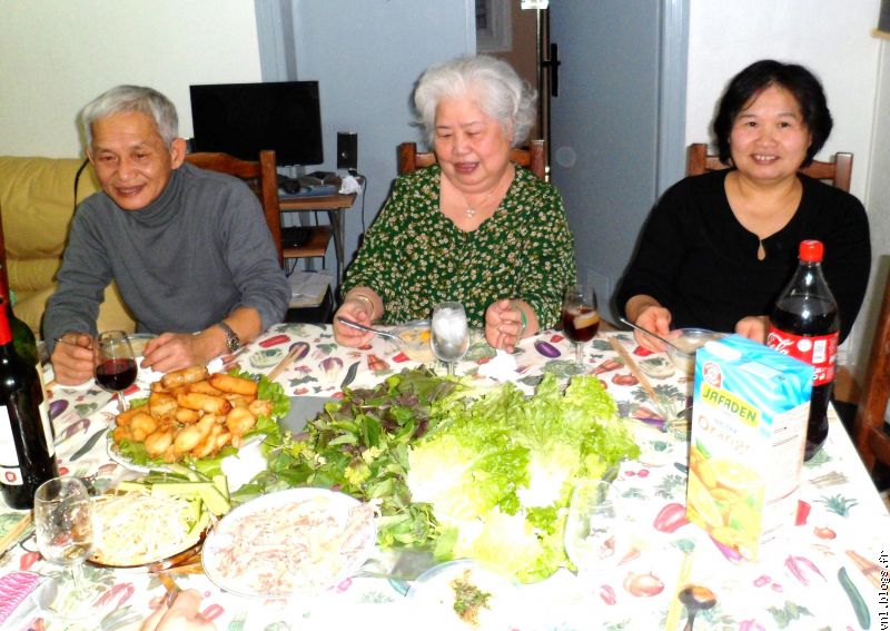 On peut voir les parents NGHIEM-HUONG, papi, mami PHUONG, Mme Hông, son mari et sa tante.